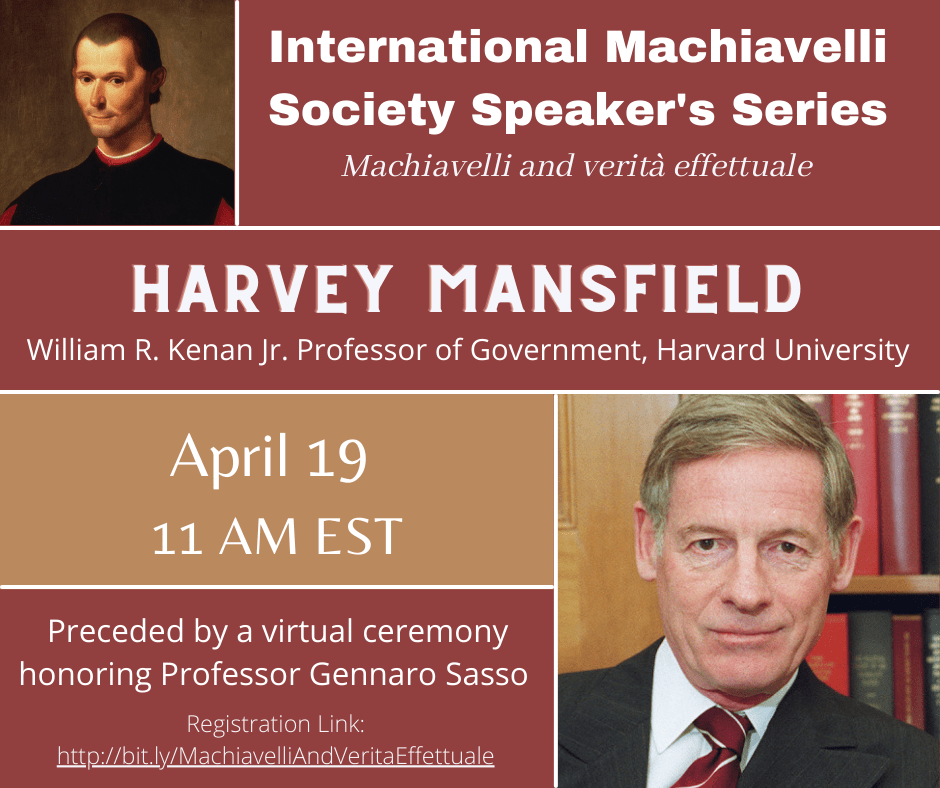 I. M. S. Speaker Series: Harvey Mansfield, April 19, 2021