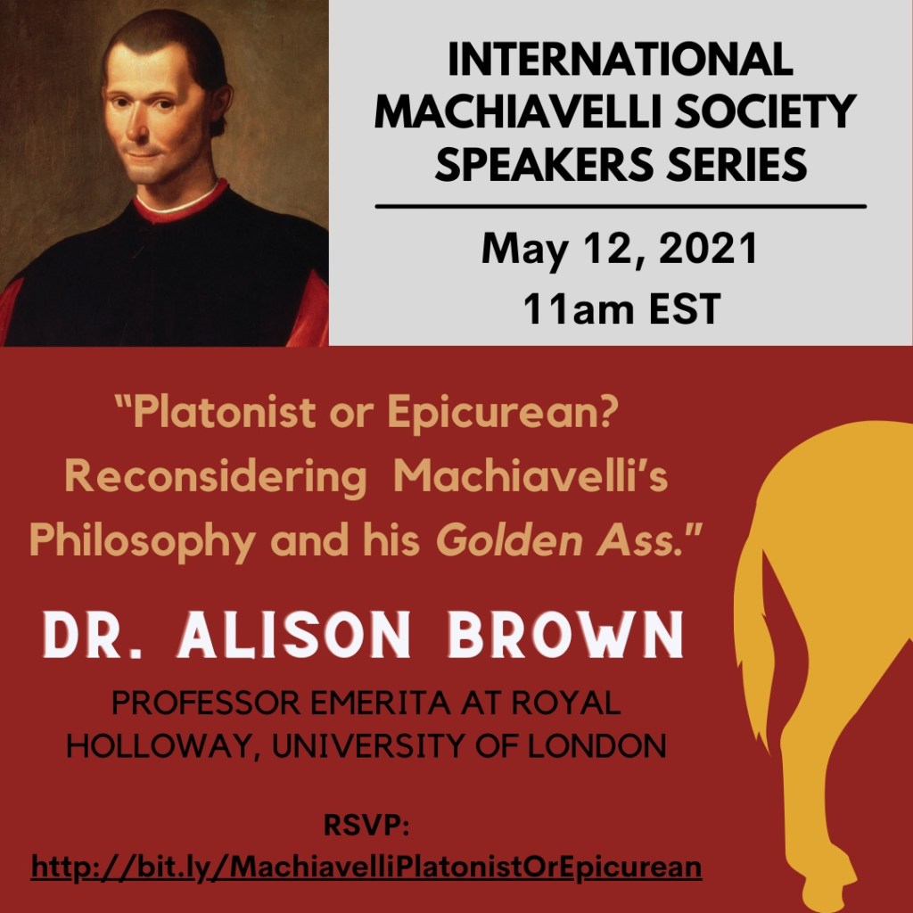 In vista del convegno della Renaissance Society of America che si terrà a Dublino, Irlanda, dal 30 Marzo al 2 Aprile 2022, la Machiavelli International Society invita a proporre temi e presentazioni su qualunque aspetto del pensiero di Machiavelli. A titolo esemplificativo si possono segnalare la relazione tra profezia e politica, il ruolo del linguaggio e della retorica nel discorso politico, gli scritti minori di Machiavelli (inclusa la sua produzione poetica) e così via.
